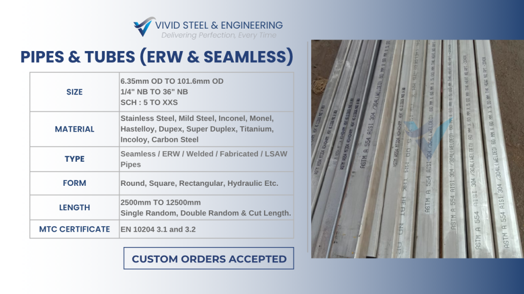 Types – Seamless, Welded/ERW, EFW, Galvanised, Structural, Precision